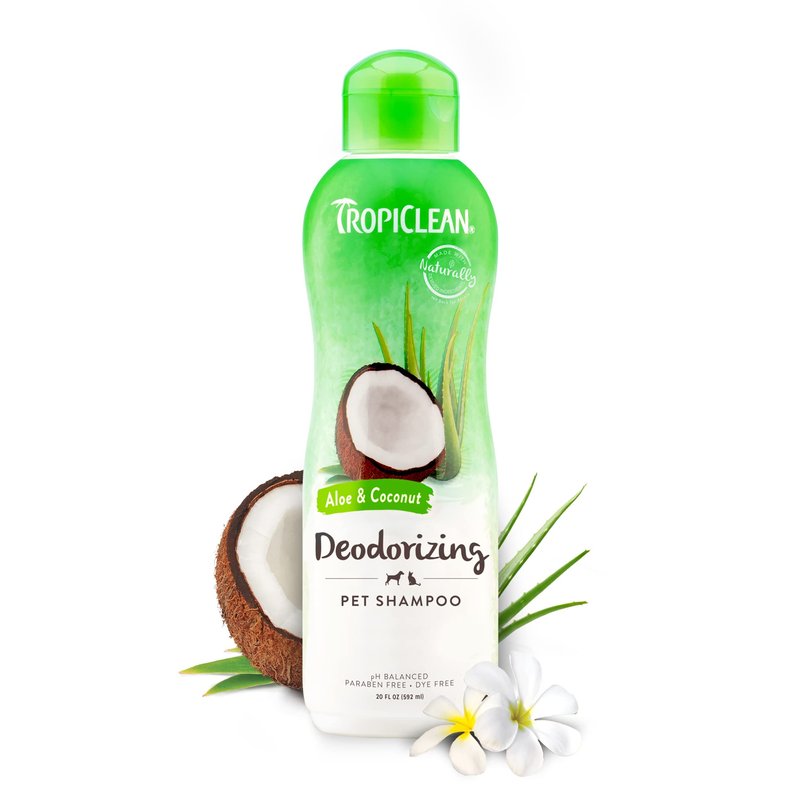 TropiClean Aloe & Coconut Deodorizing Dog Shampoo for Smelly Dogs | Odor Control Shampoo for Stinky Dogs | Natural Pet Shampoo Derived from Natural Ingredients | Cat Friendly | Made in the USA | 20 oz