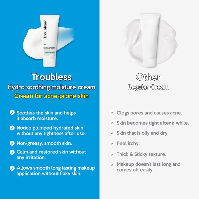 Troubless Hydro Soothing Moisturizer Face Cream | Hydrating Moisturizer Face Cream Korean Redness Relief for Face | Day & Night Skin Cream Face Moisturizer for Oily Skin Combination (2.36 fl oz)