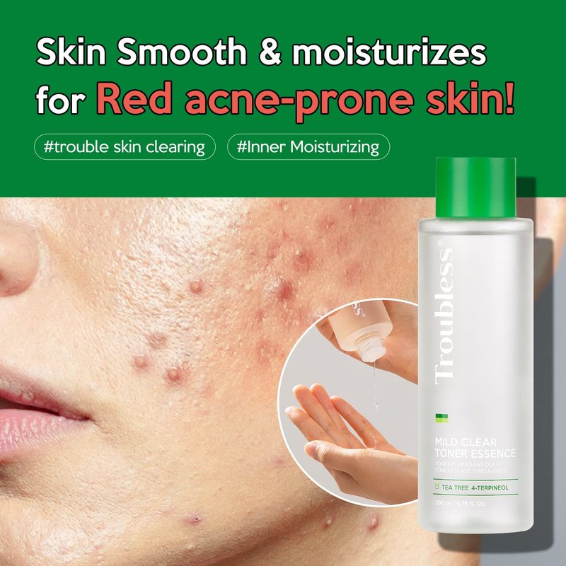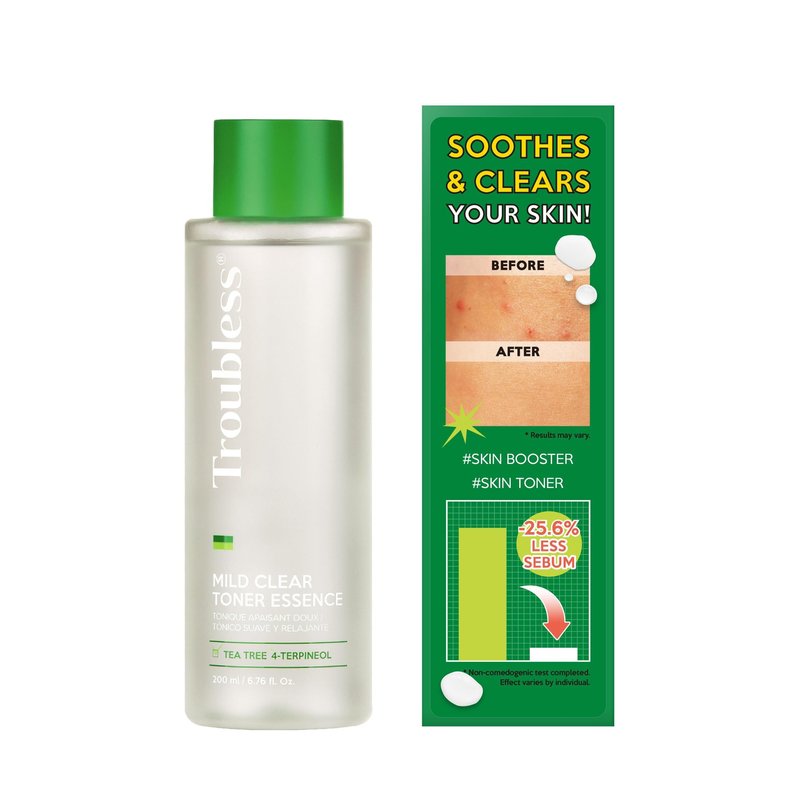 Troubless Mild Clear Toner Essence - Skin Moisturizing & Soothing Toner for Face, Tea Tree Facial Toner for All Skin Types | Hydrating Skin Toner, Daily Skin Care (6.76 fl oz)