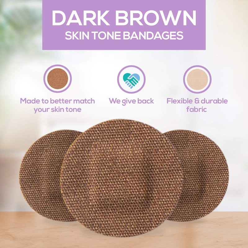 Tru Colour - Spot Bandages, Flexible Fabric Adhesive Bandages, Dark Brown Skin Tone Shade, Purple Bag, 50 Count