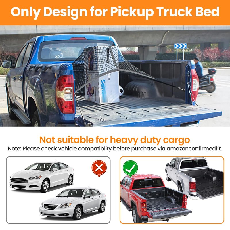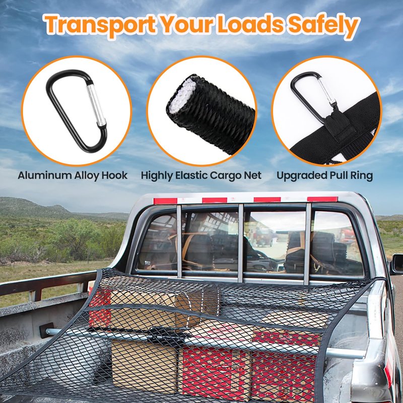 - 【Truck Trunk Net】 The truck bed elastic cargo net is designed for holding items in place without lashing while transporting compact loads.Organize your truck's back with ease for a tidy, secure drive.
