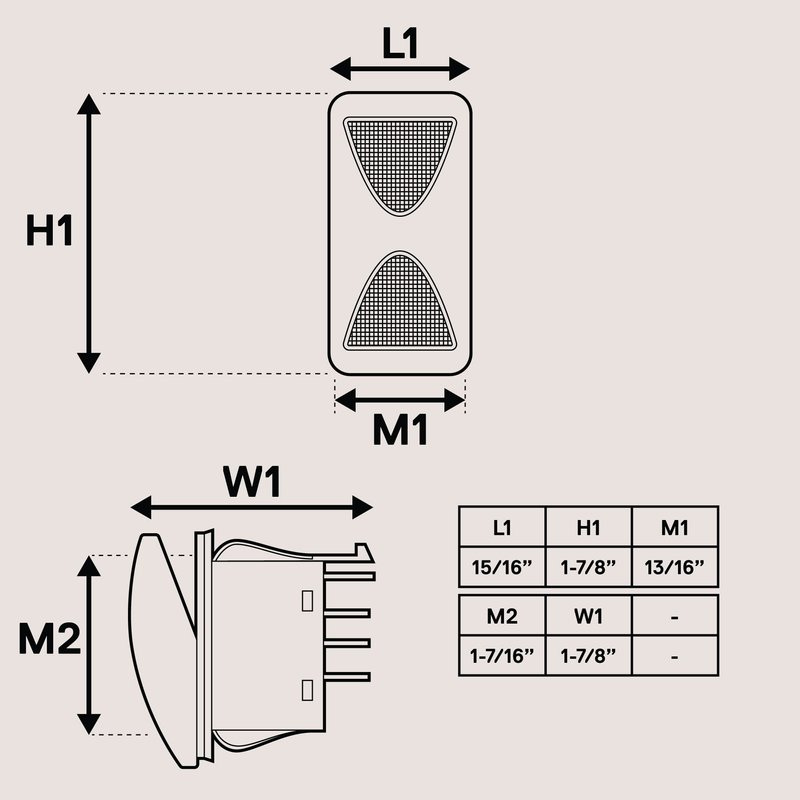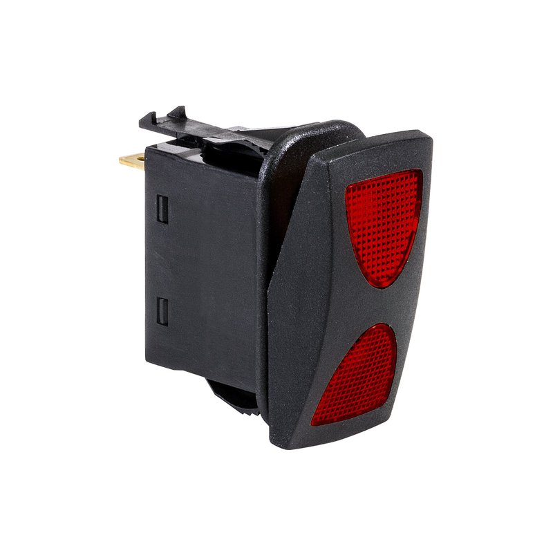 The OLS PSZACCEPS009S 4-pin SPDT LED illuminated rocker switch has an IP56 rating which makes this heavy duty rocker switch dustproof and protected against strong water jets. This three position ON OFF ON switch allows one to control multiple apparatuses independently from each other through a single rocker switch. Capable of handling 21 Amps of load from a 14 volts DC source, this on off on SPDT rocker switch has a switch body sized at 1-7/16" by 13/16", making it compatible with factory switch slots of most modern vehicles.