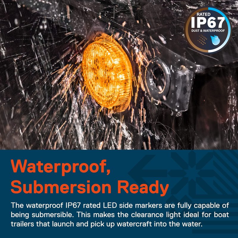 WATERPROOF, SUBMERSION READY - The waterproof IP67 rated LED side markers are fully capable of being submersible. This makes the clearance light ideal for boat trailers that launch and pick up watercraft into the water.