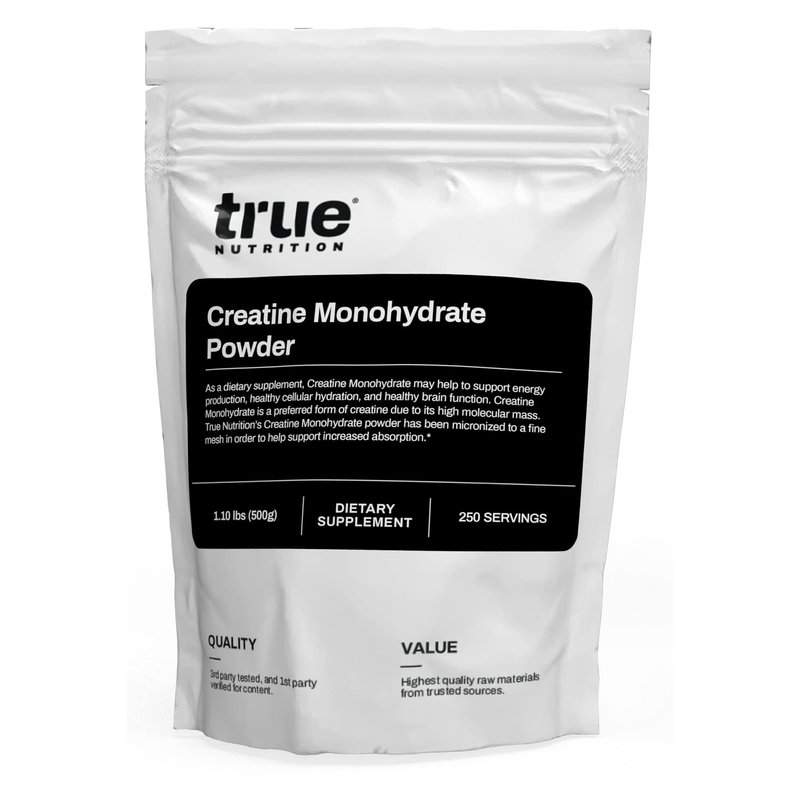 Creatine is a substance that is naturally produced by the body, and is present in every human cell used in the production of energy through ATP (Adenosine triphosphate). As a dietary supplement, Creatine Monohydrate may help to support increased energy production, healthy cellular hydration, and healthy brain function.✝ Creatine Monohydrate is a preferred form of creatine due to its high molecular mass. True Nutrition's Creatine Monohydrate powder has been micronized to a fine mesh in order to help support increased absorption.✝