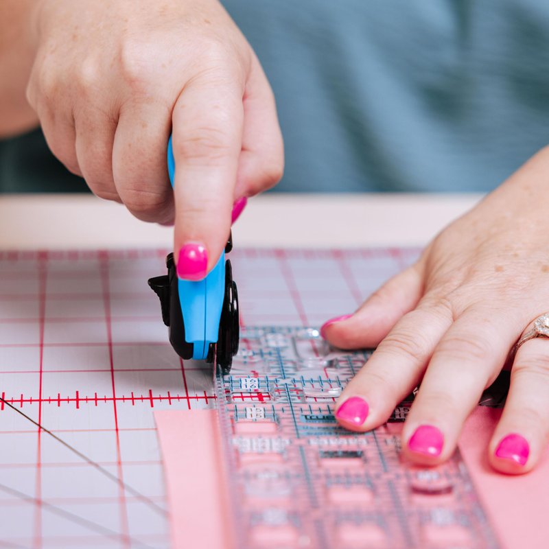 - This ergonomic rotary cutter eliminates stress in the wrist and arm