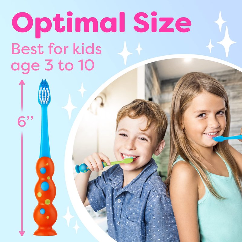 - STRONG AND GRIPPY HANDLE - Kids drop things, but not this bright boys and girls toothbrush whose handle is shaped sophisticatedly to be comfortable fit perfectly into a small hand of the holder. It’s also sturdy and durable for the children toothbrush to truly last.
