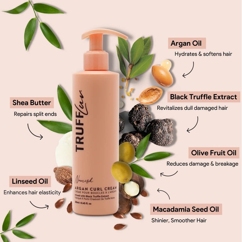 TruffLuv | Nourish Collection Argan Curl Cream, Infused with Black Truffle Extract, Curl Defining Styling Cream, Enhances Curls & Waves, De-Frizzes & Smooths, Paraben Free, Sulfate Free, 8.45 Fl Oz