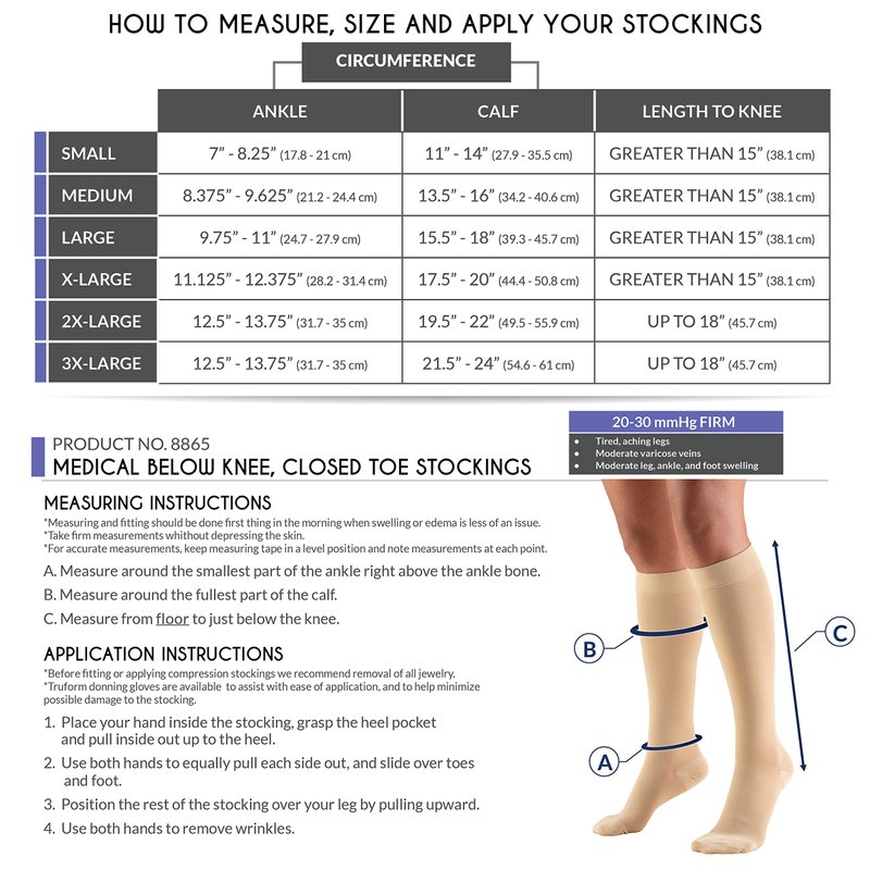 - Truform 8865; Medical support hose; Unisex style durable knit; 20-30 strength graduated compression
