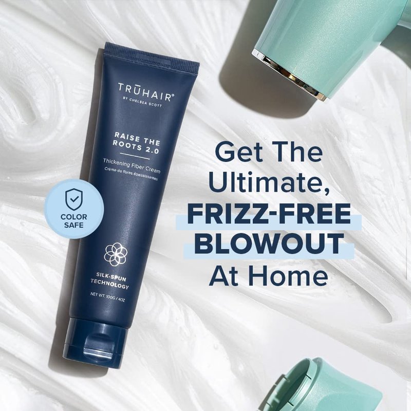 Truhair Raise The Roots 2.0 - Instant Hair Thickening Fiber Cream for Frizz-Free Blowout | Hair Styling Cream for Women & Men | Silk-Spun Fibers Hair Volumizer for Fine Hair Conditioning & Smoothing