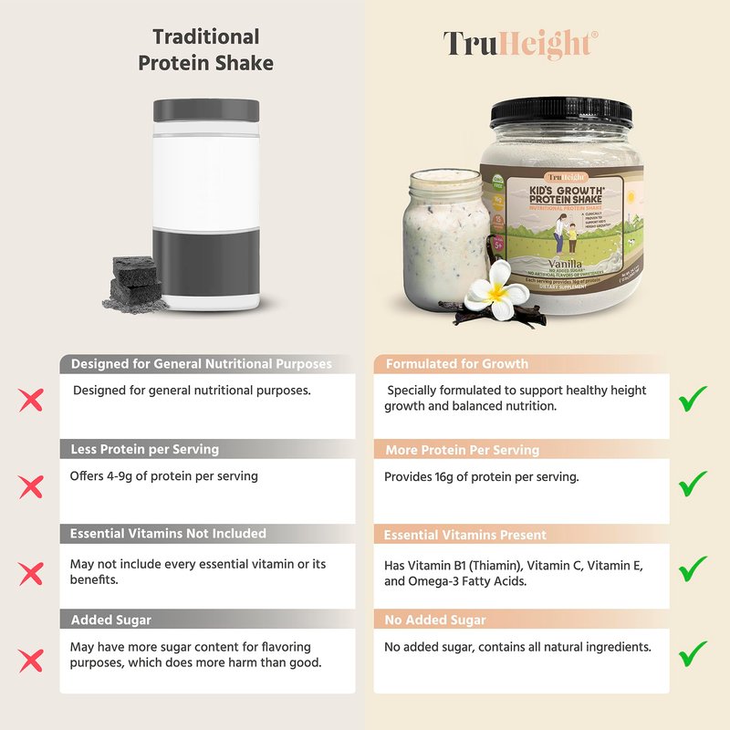 - CLINICALLY PROVEN WAY TO SUPPORT HEALTHY GROWTH: TruHeight's protein powder underwent a 6-month study to prove the effectiveness of our products. We are proud to say that our study concluded a statistically significant result in kids and teens who took TruHeight versus kids and teens who did not. Our protein powder is made with natural ingredients and helps kids and teens get the nutrients they need for healthy growth.