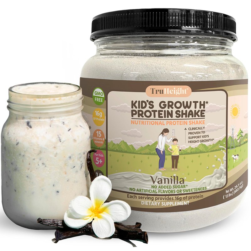 - DEVELOPED BY PEDIATRICIANS: Truheight's meal replacement shake contains vitamins and nutrients that build bone strength, immune system and overall well being. Our product comes in two tasty, sweet, and healthy flavors, vanilla and chocolate, with very low sugar content! The formula has been shown to help kids develop healthily without increasing BMI.