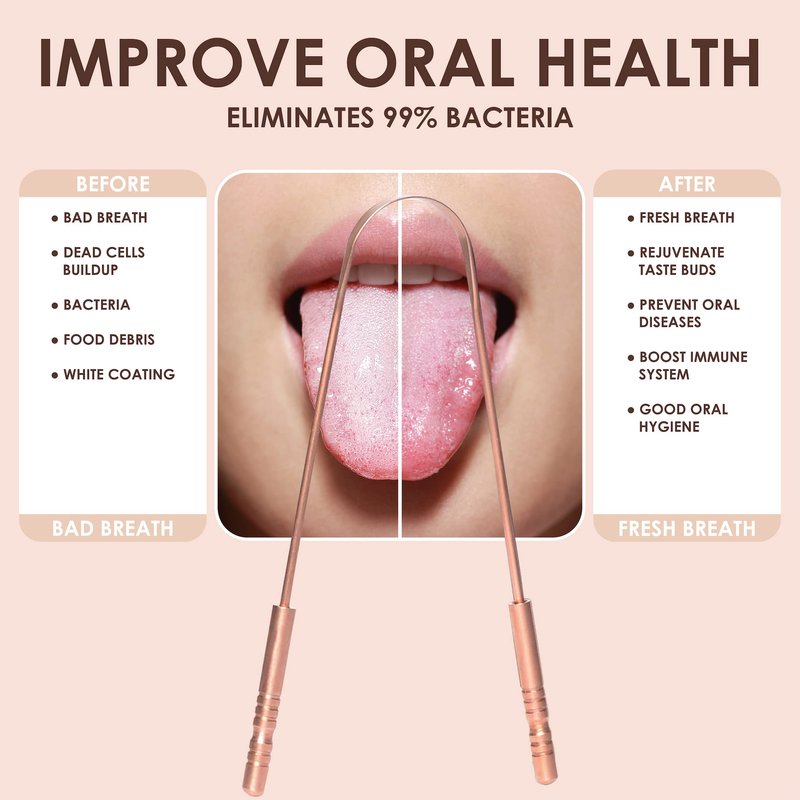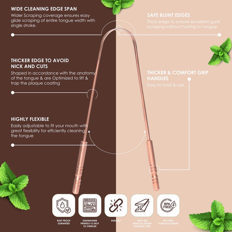 - ✅【REDUCE BAD BREATH】- Tired of bad breath and white substances on your tongue? Clean your tongue in seconds with these high quality, natural copper tongue scraper. With a quik scrape, our tongue cleaner is fast and easy way to clear out the white, coated layer on your tongue for fresh breath and better overall health. TruLife, metal tongue scraper is premium quality made with 100% medical grade copper material will give you the cleanest tongue (and freshest breath) time and time again.
