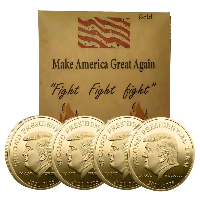 Trump 2024 Gold Coins: Fighting for America Celebrate the enduring spirit of "Make America Great Again" with our 40mm gold-plated commemorative coins. Encased in a clear protective case, these coins are perfect for both storage and display, embodying America's freedom and democracy. Spiritual Heritage: Reflecting the MAGA spirit, this coin serves as a lasting emblem of America's values, making it a cherished addition to any collection. Prominent Memento: Commemorating significant events, this presidential coin holds immense historical value, honoring esteemed individuals and serving as a timeless keepsake. Exquisite Details: Featuring intricate designs, our coin boasts precise details that enhance its collectible and historical significance. Unique Design: With distinctive symbols, this uniquely crafted coin is a must-have for collectors seeking something truly special. Worry-Free After-Sale: Shop with confidence, knowing we offer a 1-year unconditional warranty with easy returns or exchanges. Our dedicated support team is ready to replace or refund any item not received in perfect condition. Celebrate history and heritage with a coin that stands for America's greatness.