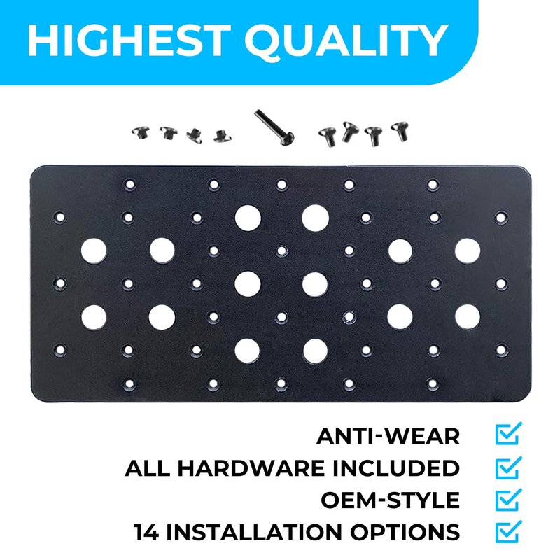 - KIT INCLUDES- Our tow hook license plate bracket kit includes unique & secure screw bolts, 4 black screw caps, 1 wrench. Tools required: Phillips head screwdriver. Installation time 5 minutes. 14 mounting options are available