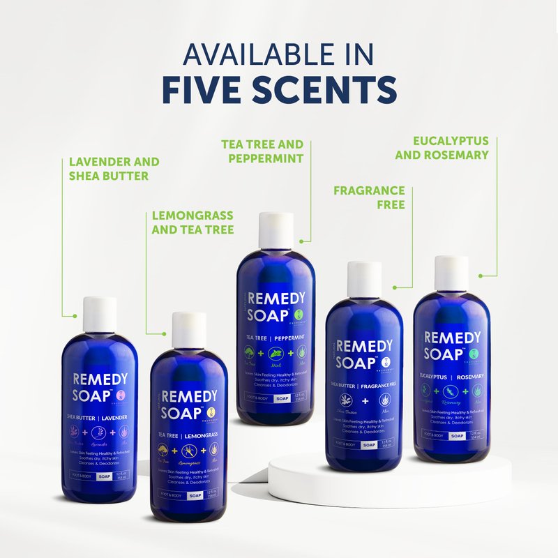 - Moisturizing Itch Soap: Infused with tea tree, peppermint, and eucalyptus oils; ingredients like jojoba oil, olive oil, and coconut oil work together to hydrate and refresh