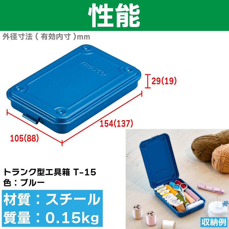 TRUSCO T-15 Trunk Tool Box, 6.1 x 4.1 x 1.1 inches (154 x 105 x 29 mm), Blue