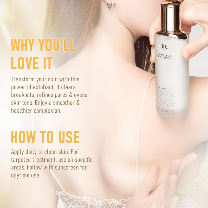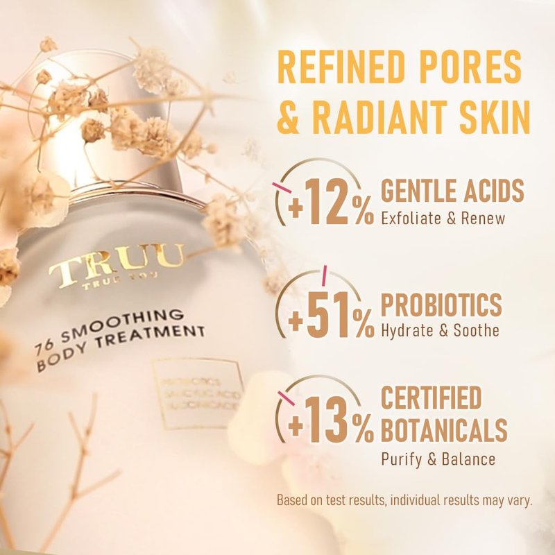 Achieve your best skin yet with the TRUU 76 Smoothing Body Treatment Body Lotion. Smooth, hydrate, and refine your skin with our advanced formula. Order now and experience the transformation to healthier, more vibrant skin!