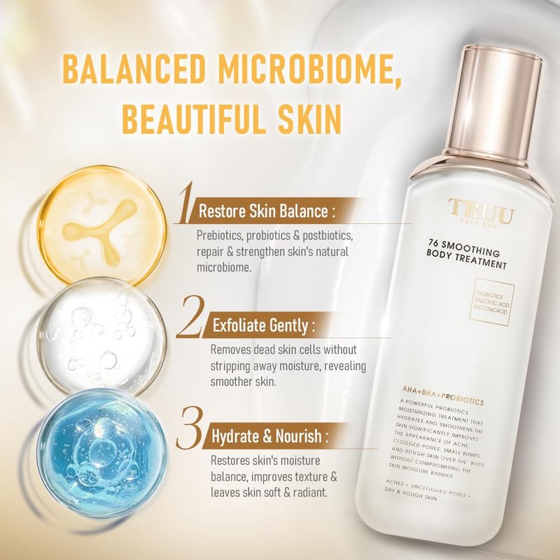 TRUU 76 Smoothing Body Treatment Body Lotion – Advanced Exfoliation with Probiotics & Willow Bark Extract – Smooths, Hydrates, and Refines Skin | 4.1 Fl. Oz