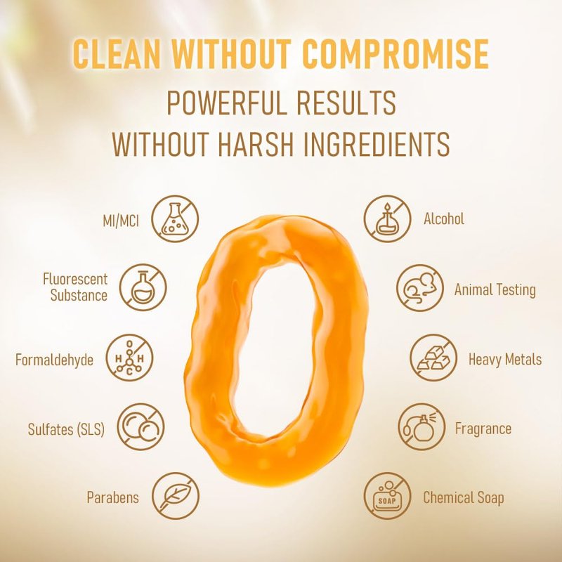 Feature: Free from harsh soaps and irritants. Maintains natural oils and moisture, ensuring a soft, smooth feel without causing dryness or irritation.