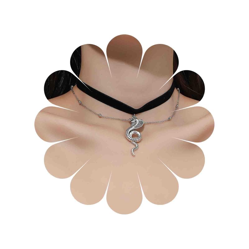 TseanYi Black Velvet Choker Necklace Goth Silver Snake Dark Neckalce Punk Snake Velvet Suede Neckalce Dark Serpent Pendant Necklace