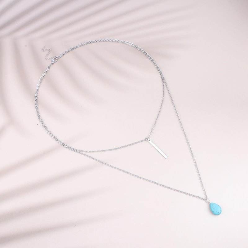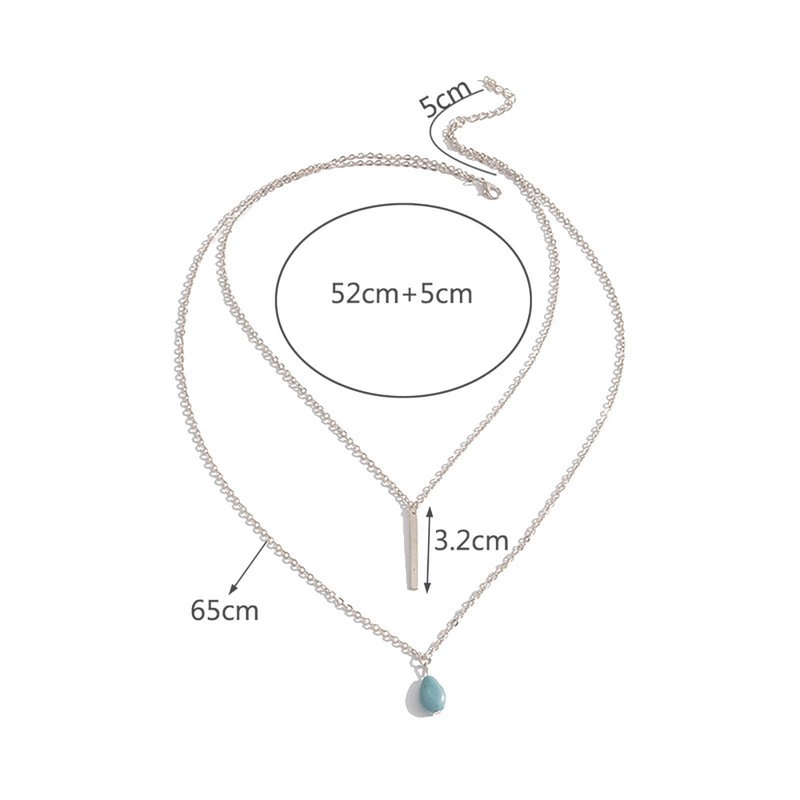 TseanYi Boho Teardrop Turquoise Neckalce Layered Turquoise Pendant Neckalce Silver Bar Pendant Necklace Vintage Layering Turquoise Water drop Necklace Jewelry for Women