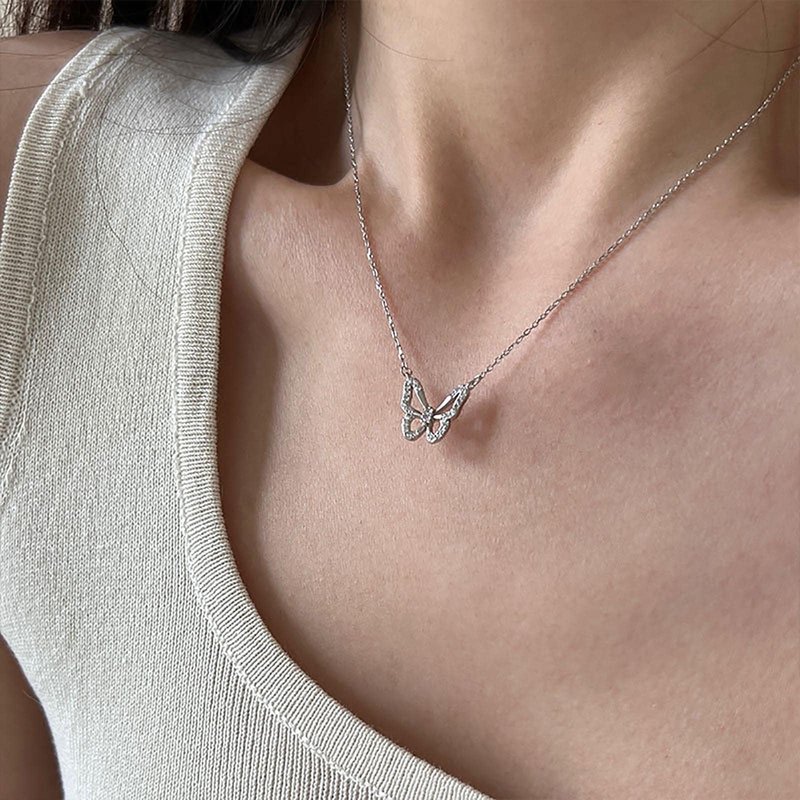 - Butterfly clavicle necklace.Gift Occasion:The Simple Elegance and Intricate Detailing, Combine Effortlessly Together to Suit any Style, From Casual to High Chic.Suitable for any Occasion, Such as Beaches, Event Parties, Dance Parties, Dates, Daily Collocations,Banquet,Weddings, etc.