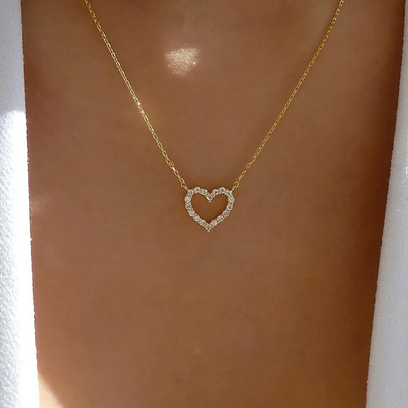 TseanYi Crystal Heart Necklace Gold Cz Heart Pendant Necklace Boho Love Heart Necklace Sparkling Crystal Heart Choker Necklace Crystal Love Pendant Necklace Chain