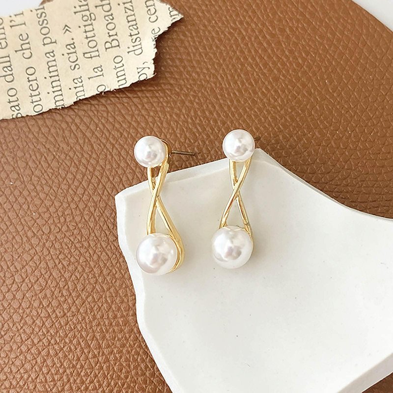- Vintage pearl drop stud earrings.Item Details:Handmade Item.Size:As Shown.Color:Gold.Materials:Quality Alloy/ Pearl.Location:Earlobe.Style:Boho/Vintage.