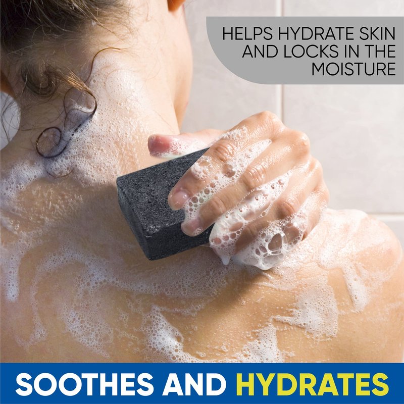 - CLEANSING CHARCOAL - Our Charcoal body soap and sponge cleans and removes oil and dirt while not being as harsh on your skin as exfoliating body scrubber products. Use a body exfoliator that's gentle and calming on the skin with our Charcoal soap sponge. This product comes in a case with one bar of soap sponge.