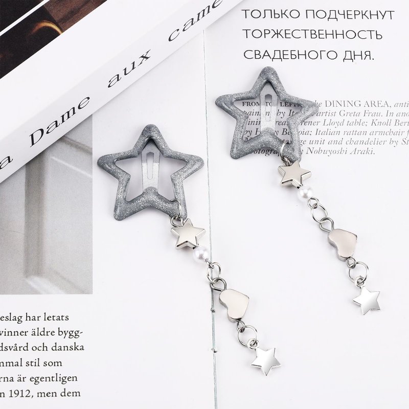 - DANGLY HAIR CLIPS Y2K: The star hair clips are uniquely designed as stars, fashion and gorgeous. The star hair barrettes can be clipped wherever you need to adorn your head. Beautiful star decoration adds beauty to your hair, and the hairstyle will not be messy, shiny star accessories, y2k hair clips, concert accessories