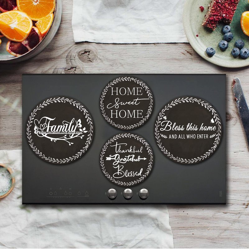Tucocoo 4 Pieces Family Round Stove Burner Covers Set,2 Pieces 8 Inches and 2 Pieces 10 Inches,Black Gas Stove Burner Covers,Electric Stove Burner Covers,Home Sweet Home Metal Stove Burner Cover Kits