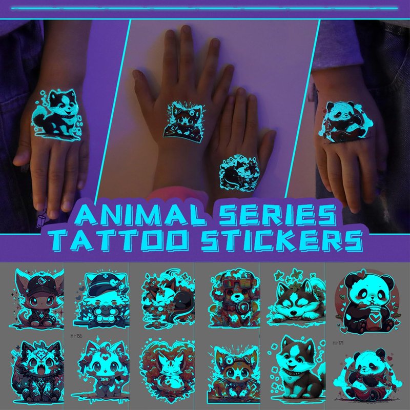 Tuenmofun 25 Sheets Glow In The Dark Temporary Tattoos for Kids, Individually Wrapped Waterproof Stickers with 50 Animals Styles for Boys and Girls Party Favors Makeup Decoration
