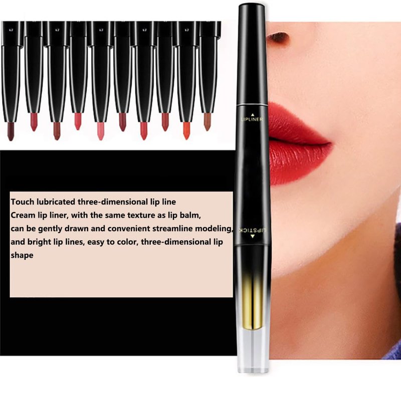TUKEFEV Double Head Lipstick Lipliner 2 In 1 Lip Color Matte Surface Waterproof, Non Fading, Non Stick Cup Lipstick Long-Lasting Lip Color Liquid Lipstick Makeup