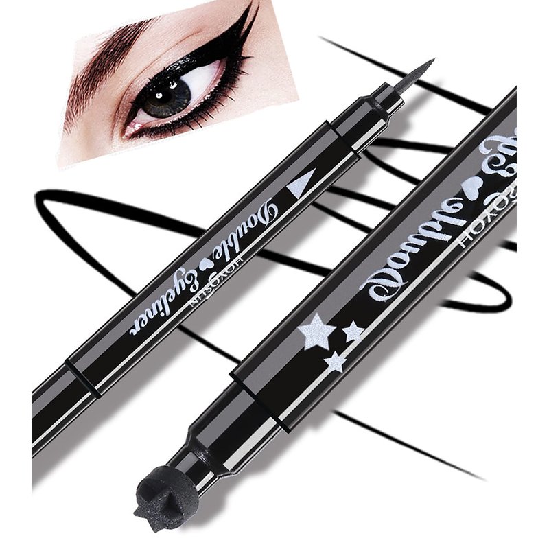 - Each pen has 2 ends. Liquid Eye Liner One end for stamping and the other has a very fine tip for defining the rest of the eye with precision. You can even use the size of the liner as a stencil for a more dramatic makeup.