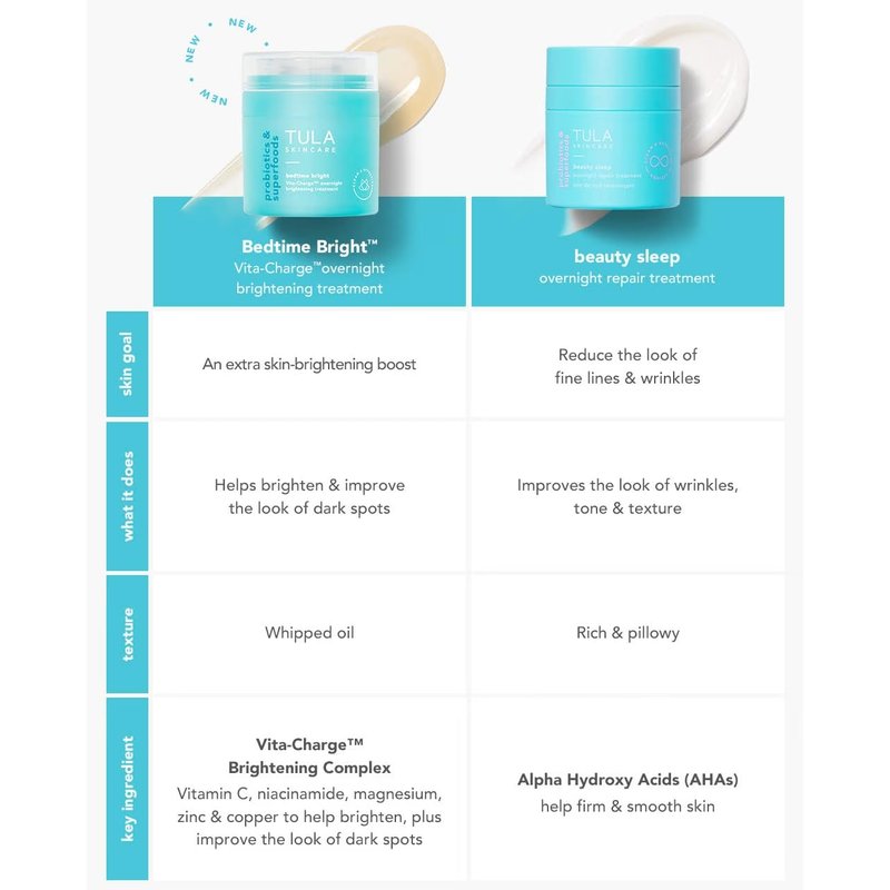 TULA Skin Care Bedtime - Bright Vita-Charge™ Overnight Brightening Treatment, Vitamin C & Niacinamide help Even Skin Tone & Texture, 1.7fl oz