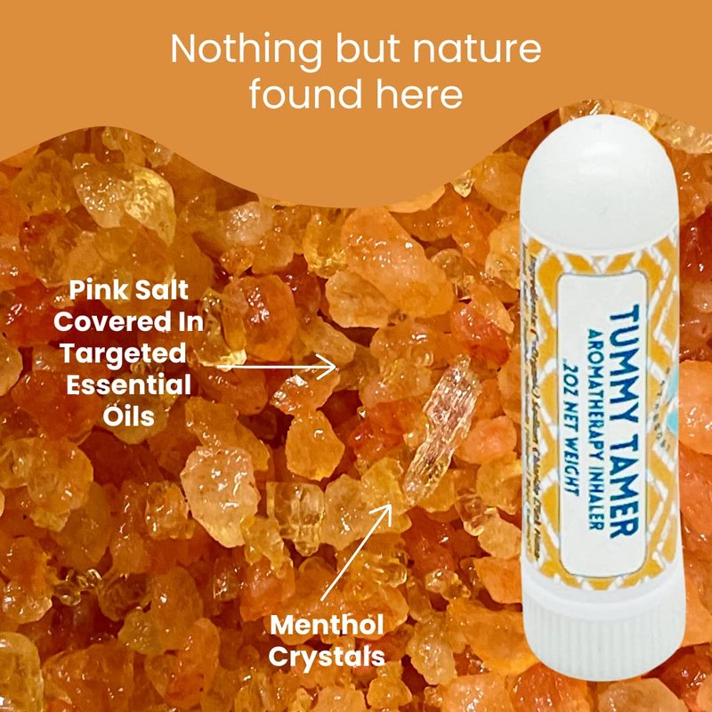TUMMY TAMER 2PK Nausea Inhaler w/Pink Salt, Menthol, Ginger, Peppermint, Basil & Lemon Oils | Fast Acting Aromatherapy | Motion Morning Sickness | Migraine | Chemo | Stocking Stuffer Gift