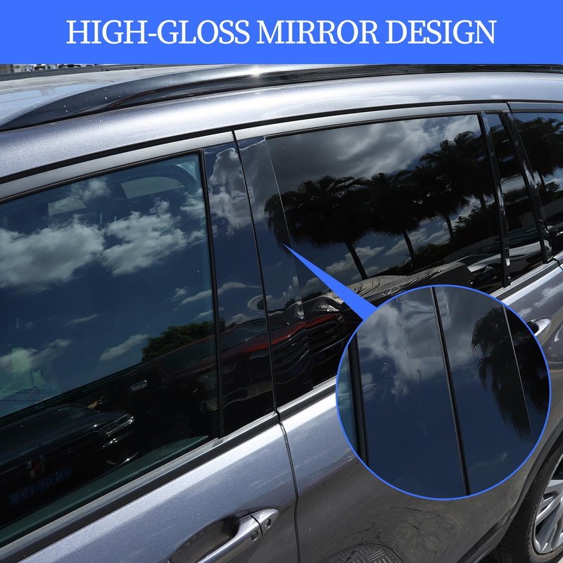 - MIRROR DESIGN: Window pillar post trim are made of PC mirror design, high-gloss mirror surface can blend with your car, enhance the three-dimensional sense of the vehicle, change the ordinary appearance of the car, make your car look cooler and more upscale.