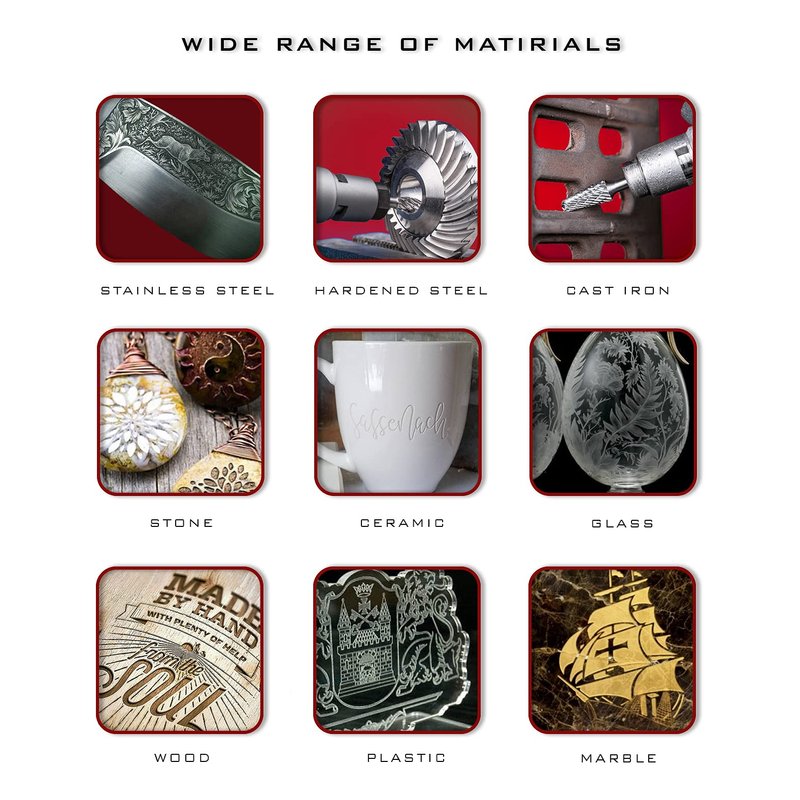 - Tungsten carbide - hardness, high strength, and durability. The service life is 8 times longer than that of HSS tool. Pilim double cut carbide rotary burr set can be used on all types of metals, including stainless steel and hardened steel, as well as wood, jade, marble, and bone.