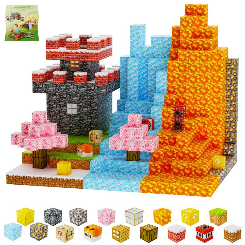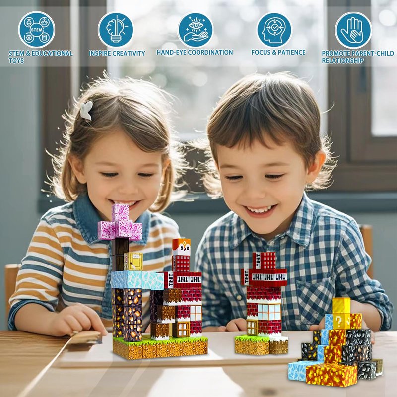 Unlock your creativity with this 100-piece magnetic building set! Construct your own miniature world inspired by the iconic video game, with colorful blocks resembling familiar elements like grass, water, lava, and bricks. Explore endless possibilities as you design intricate structures, landscapes, and characters. This engaging toy encourages imaginative play, problem-solving, and spatial reasoning skills. Suitable for ages 3 and up, it provides hours of entertainment for both kids and adults alike. Compact and portable, it's the perfect travel companion or a fun activity to enjoy at home. Unleash your inner architect and let your imagination run wild!