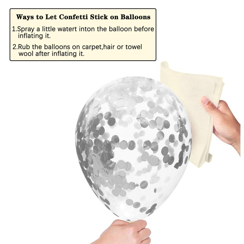 - · Easy to Use: These confetti balloons can filled with both helium or air, shake the confetti balloons and you can gently rub them on the hair or silk, wool... this will generate friction and the confetti will stick to the side and make the balloons look more beautiful. After parties, you may pop the balloons and let the confetti fall all over which increase lots of fun to the party!