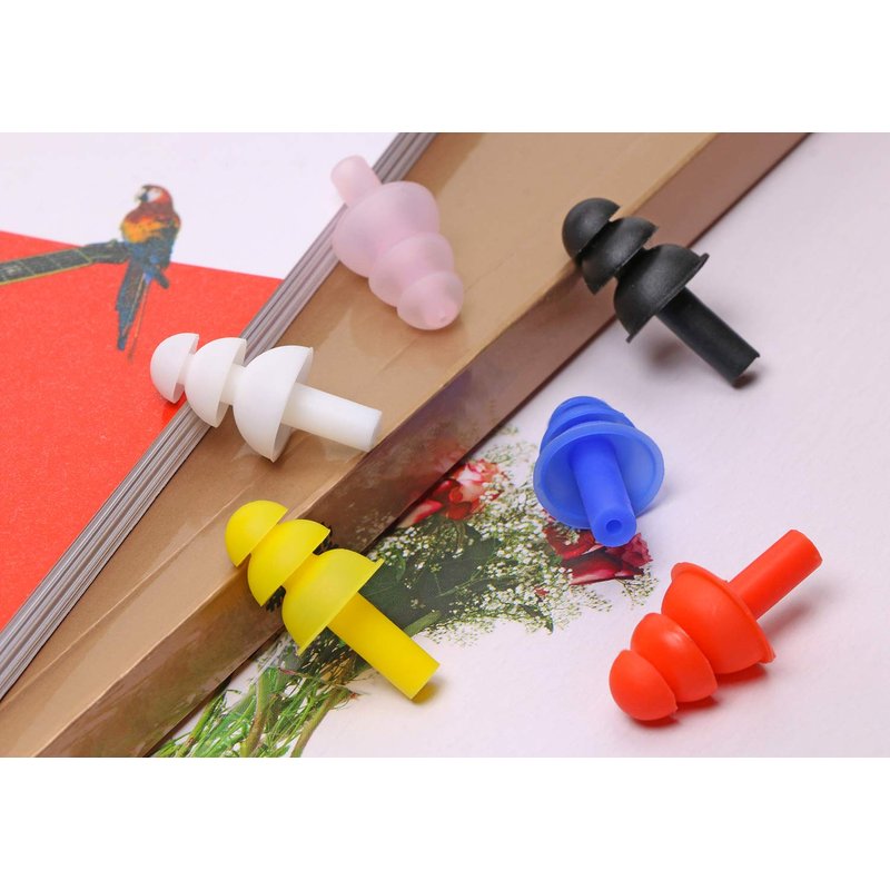 - 6 different colors, red, yellow, blue white, black and pink, 6 pairs, enough quantity earplugs for your use and replacement.