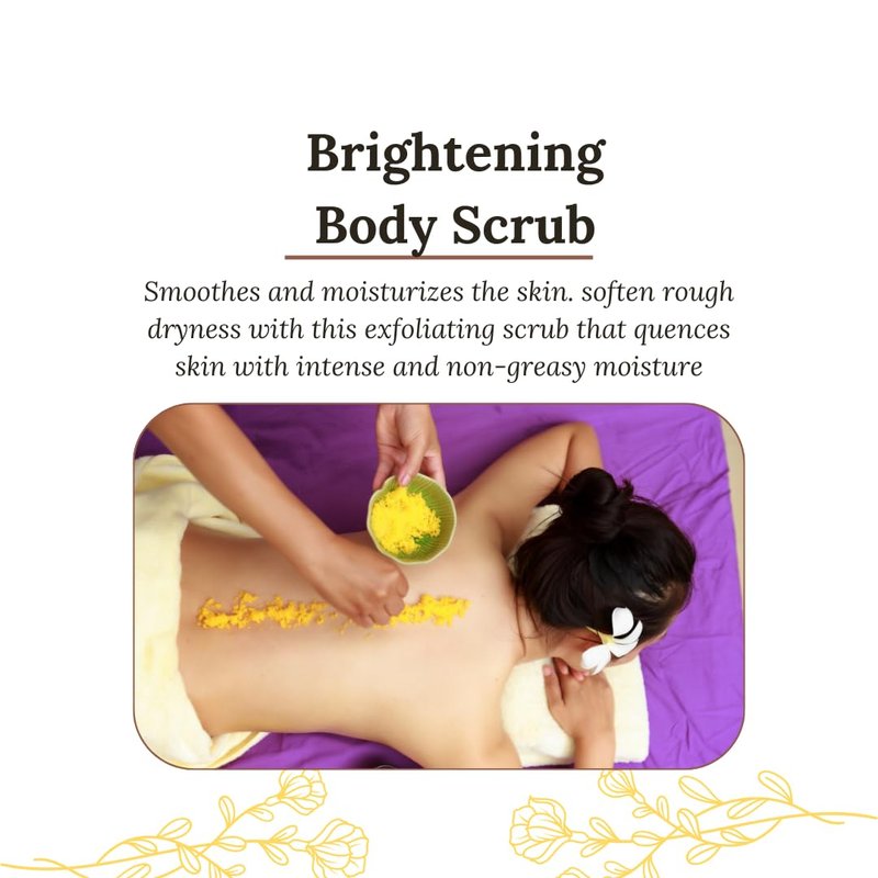 Turmeric brightening body scrub will bring a natural glow to the body, brighten dark spots, and combat aging skin. Your skin will feel very soft and refreshed after using this scrub! Say goodbye to dull dry skin and hello to your natural glow. Our exfoliating body scrub can help to revitalize dull skin, while also targeting dark spots and uneven skin tones. This natural body scrub has a thick formula enriched with nourishing ingredients that hydrate the skin while also helping to remove dead skin cells. Brightens and exfoliates the skin to get rid of dark spots on the body face while also leaving your skin supple and hydrated.