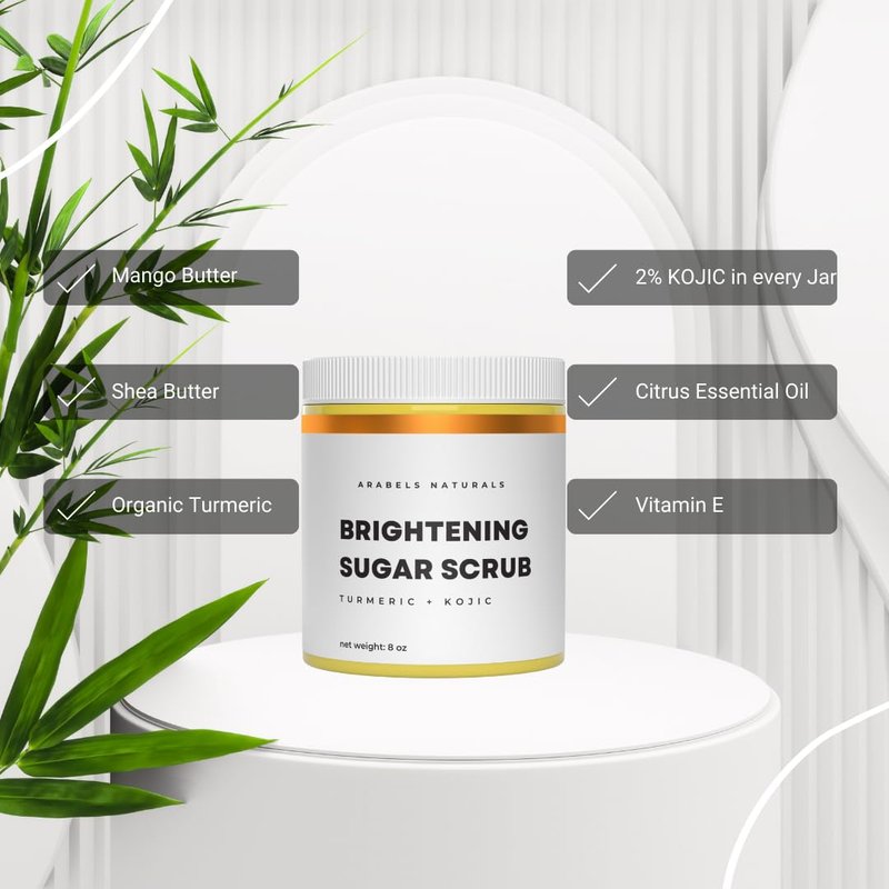 - NATURAL TURMERIC SUGAR SCRUB: Elevate your skincare routine with our sugar body scrub, cleanse, exfoliate, nourish and hydrates your skin with a rich, exfoliating body scrub featuring Real Sugar, Turmeric, Kojic, Shea Butter and variety botanical body oils, to rejuvenate & refresh dull, dry skin, improve skin vibrant. Tumeric is known to bring a natural glow to the body, brighten dark spots and combat aging skin.