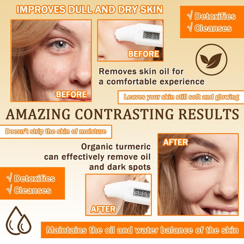 - 🍍【Lasting Oil Control and Delicate】Turmeric face mask can easily maintain the skin's oil balance, control oil, adhere to the daily use of cleansing and oil control effect will be better.