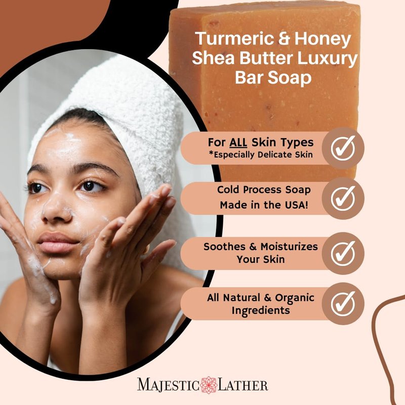 Turmeric & Honey Luxury Handmade Bar Soap for Face & Body. Gentle Cleansing, Soothing, Moisturizing & Nourishing - Shea Butter & Natural Oils. Cold Process. Vegan. For All Skin Types.5.0 Oz.
