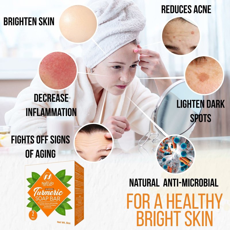 - BAR SOAP FOR FACE & BODY: Use the turmeric natural soap as a face cleanser, body wash or spot treatment. Ultra nourishing & proven to brighten dull skin, dark circles & spots, it can be used on armpits, the groin area & more.