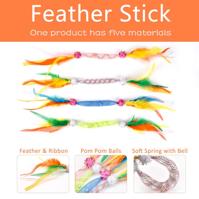 TUSATIY Cat Feather Toys with Bell 4Pack, Colorful Cat Teaser Cat Springs Ribbon Toys,Interactive Cat Toys for Indoor Cats Kitten, Suitable for Cats Bite & Hunt