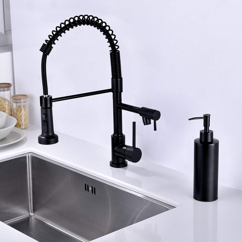TUTEW Soap Dispenser, Full Stainless Steel Soap Dispenser, Matte Black Dish Soap Dispenser for Kitchen, Bathroom Hand Soap Dispenser, Black Kitchen Soap Dispenser