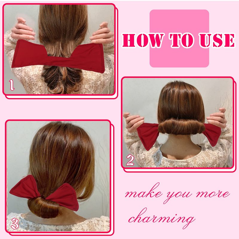 Product Specifications: Brand: TUUXI Material: Cloth Fabric Colors: White Red Black Size: 14 inch / 36 cm Package: 3 pcs How to use: Step 1: Put the hair through the middle of the bun Step 2: Roll up the bun from the ends of the hair Step 3: Cross-bundle the ends of the bun Features: 1.The inside of the hairband is supported by a metal strip, you can manually restore it to its original shape after each use. 2.Easy and elegant, suitable for thick and thin hair. It can fix your hair well. 3.With our bun maker, it is not only easy to operate, but also saves time, allowing you to make up pretty hairstyles. Note: 1.Please allow a little size error due to manual measurement; 2.The color display may different slightly depending on monitor settings.