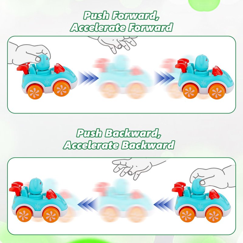- 🚗【Cute Animal Car Toys】:The inertia toy cars will run forward when gently pushed forward and backward when gently pulled backward, no batteries bring more environmental protection. In the process of running, the little animal driver will jump up and down, bringing more fun while playing.